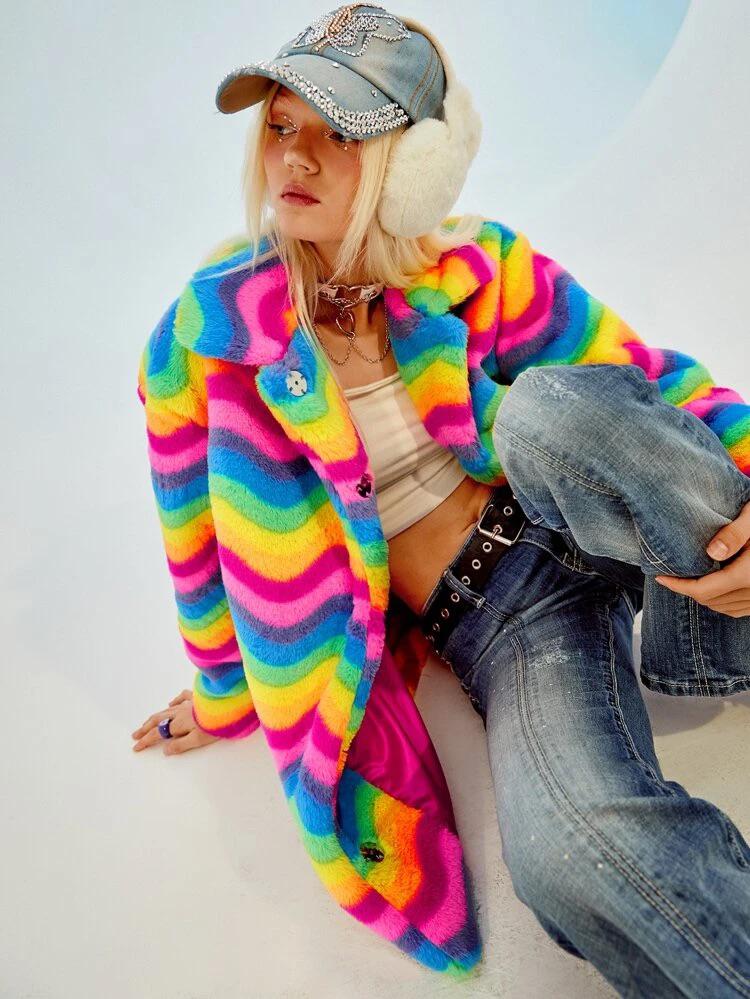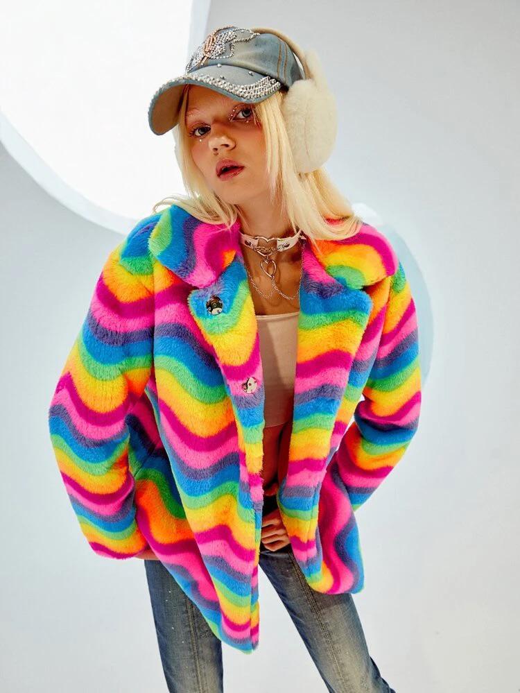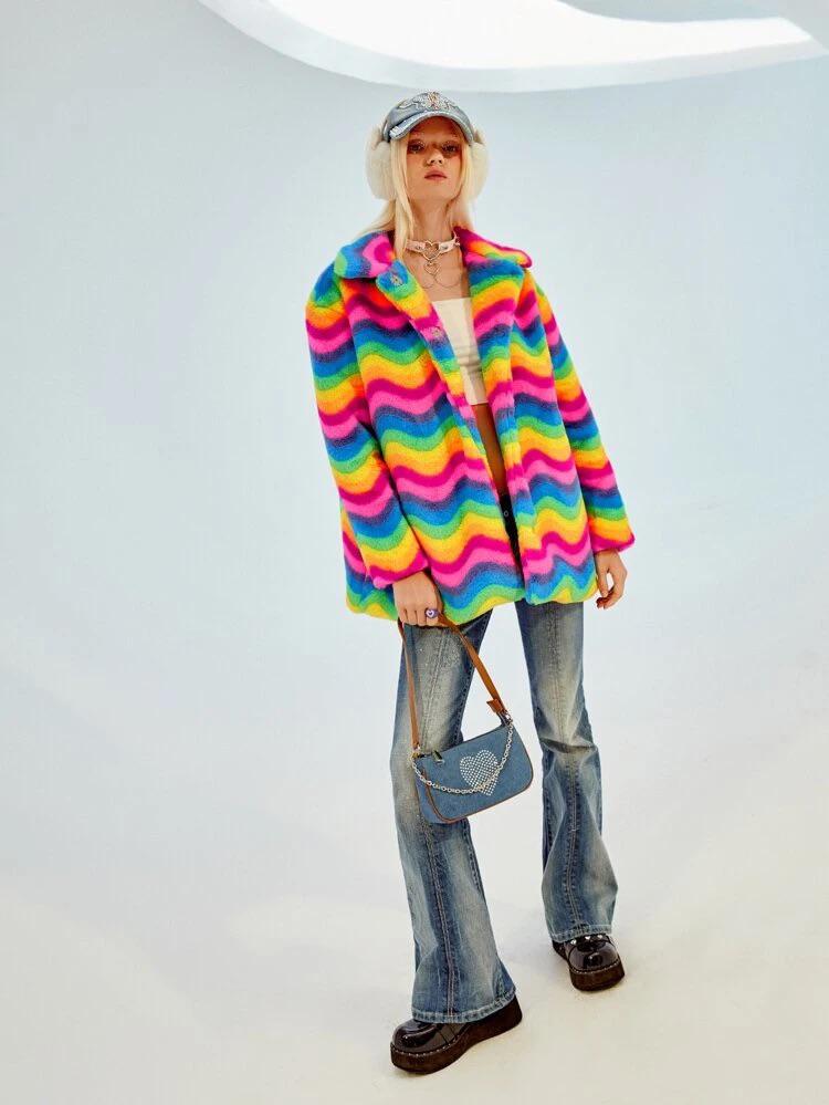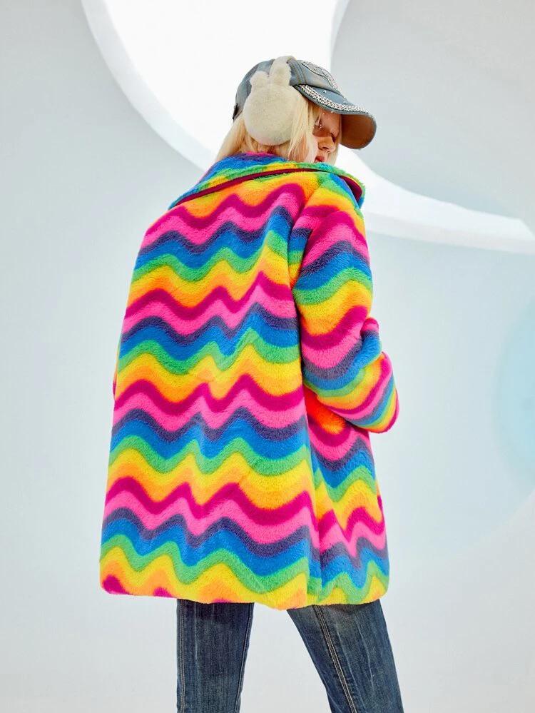 Color Block Fuzzy Coat
