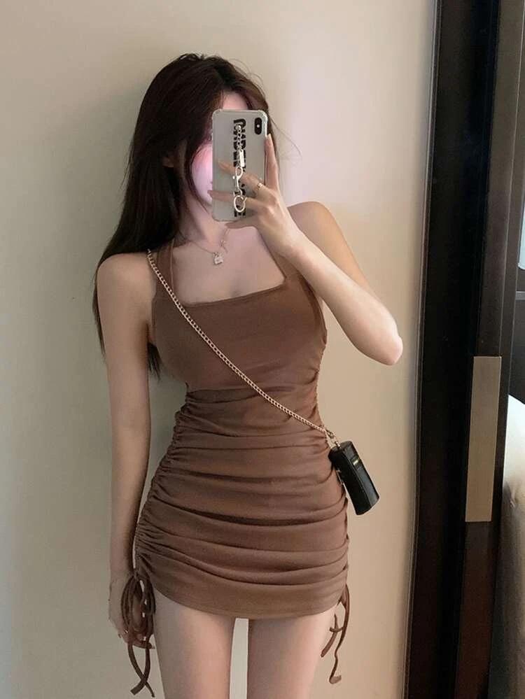 Honeyspot Drawstring Side Halter Bodycon Dress
