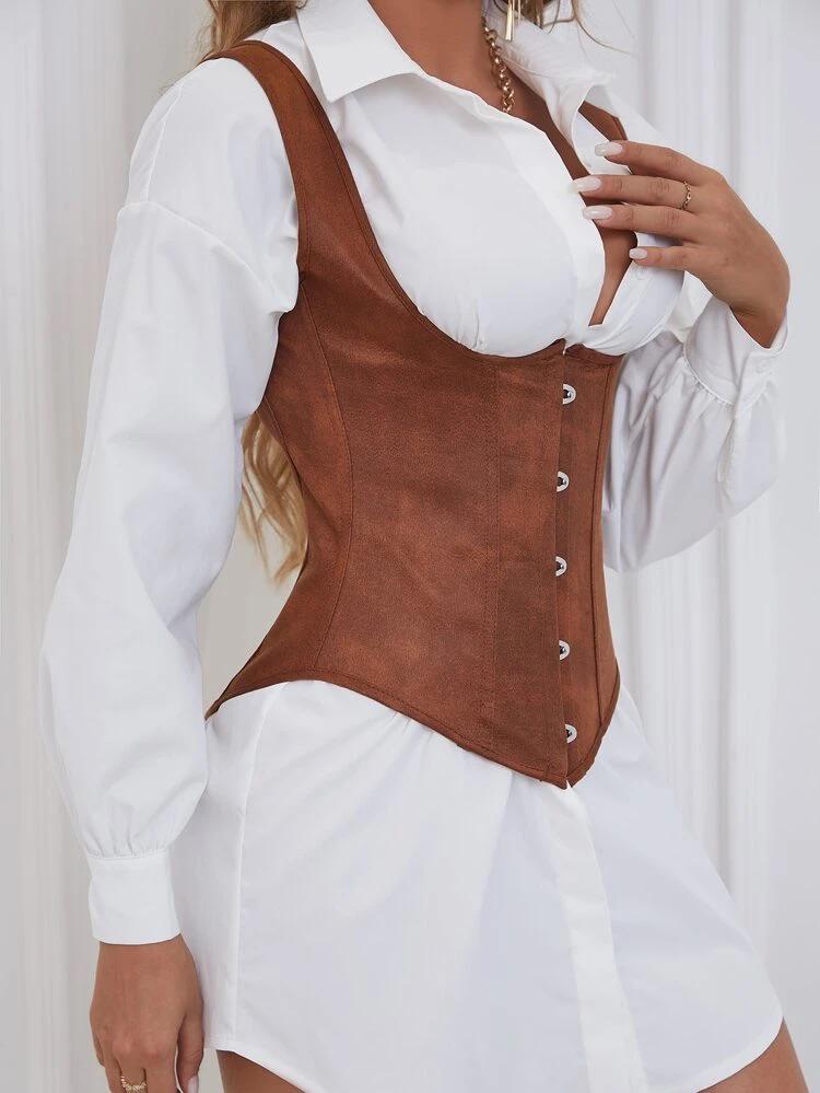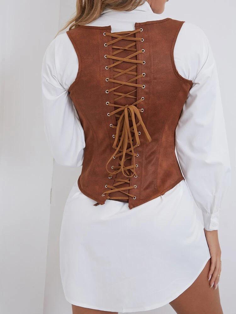 Lace Up Tie Back Shapewear Top Without Blouse