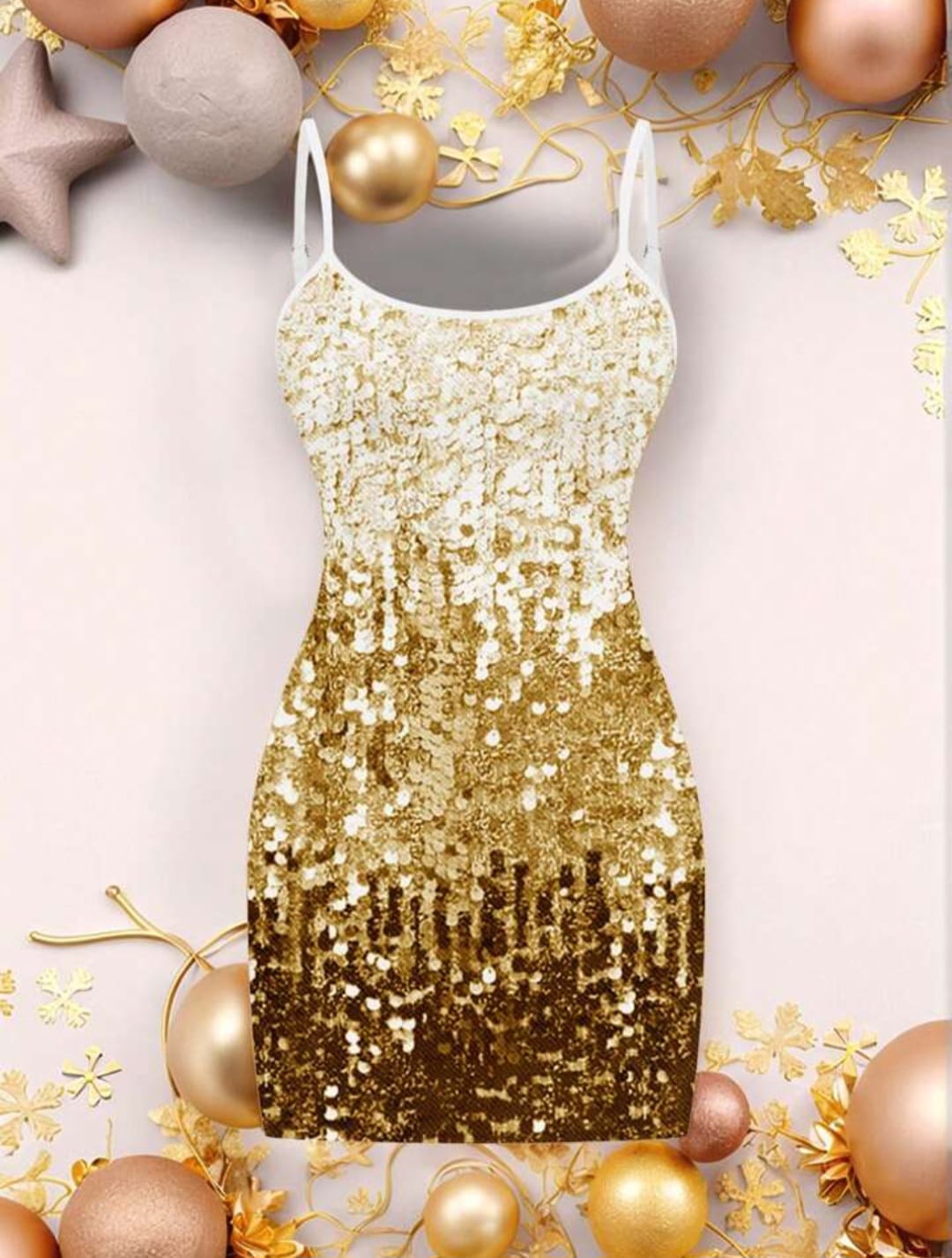 Gold Sequin Printed Bodycon Dress