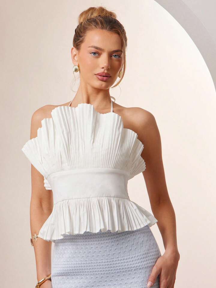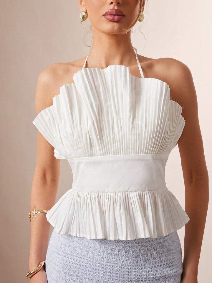 Inform when this item available White Pleated Halter Ruffled Neck Top